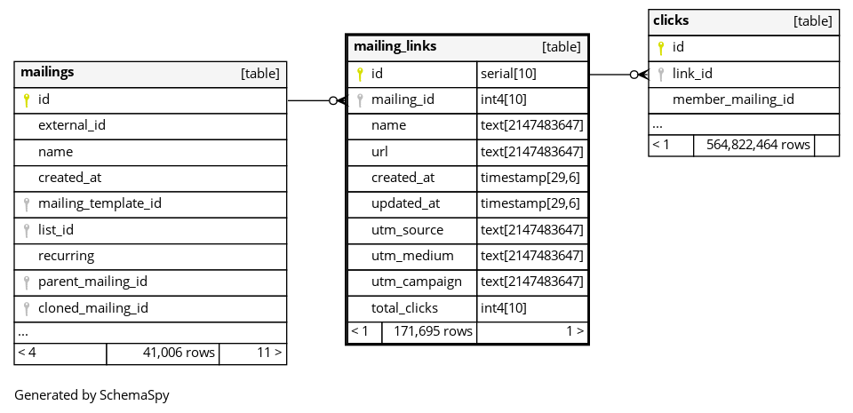 | mailing_links_pkey | Primary key | Asc | id |